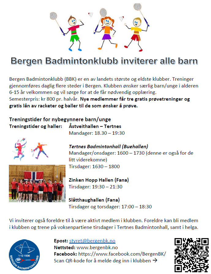 Det innkalles herved til årsmøte 29. mars 2022 i lokalene til Bergen Badmintonklubb (Buehallen). Relevante dokumenter legges ut her fortløpende.